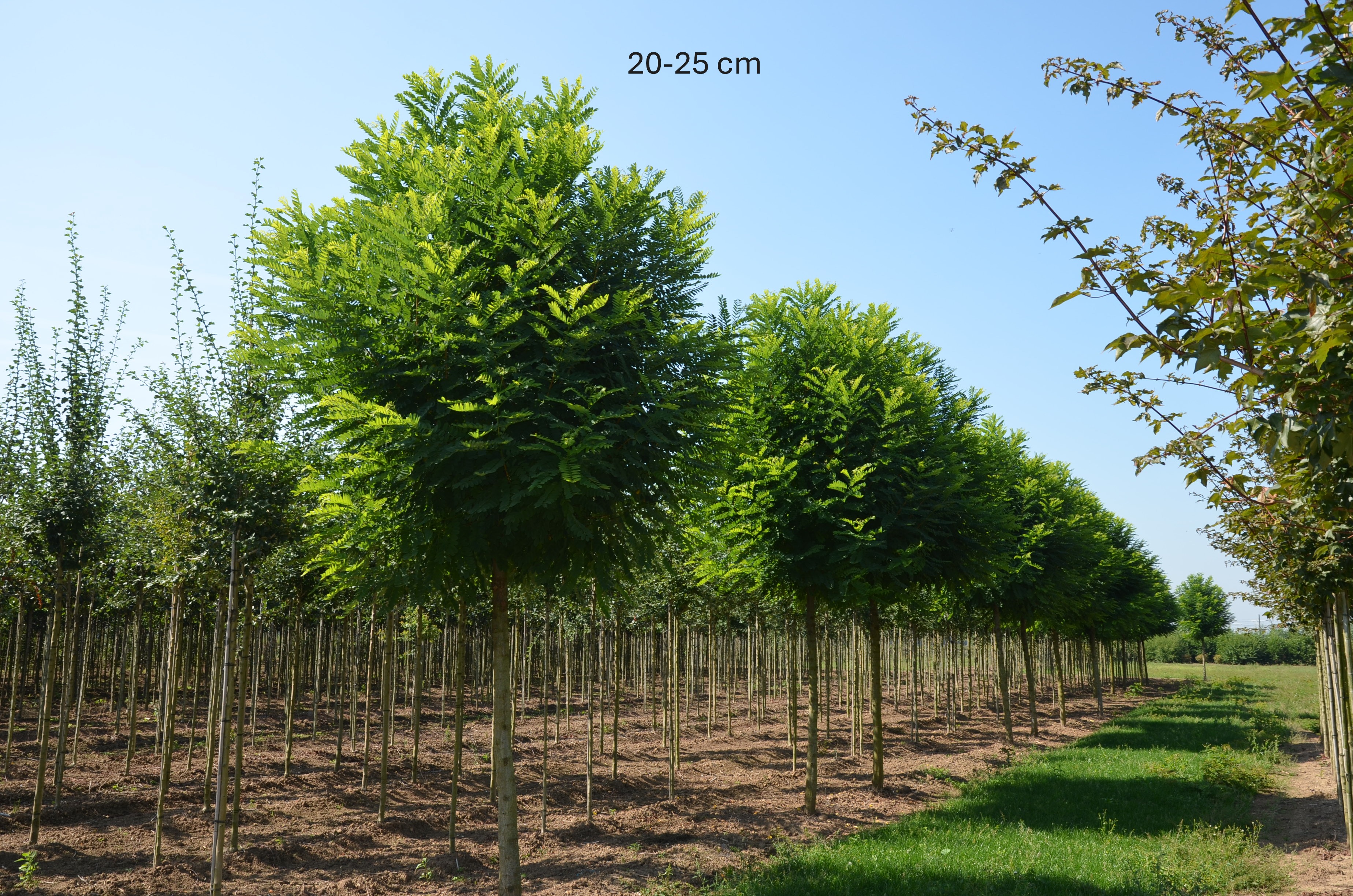 - Die Bäume wachsen im Freiland und werden mit Ballen aus dem Boden gestochen, danach, damit der schwere Erdballen an den Wurzeln verbleibt und zum Transport, mit einem Drahtkorb versehen.
