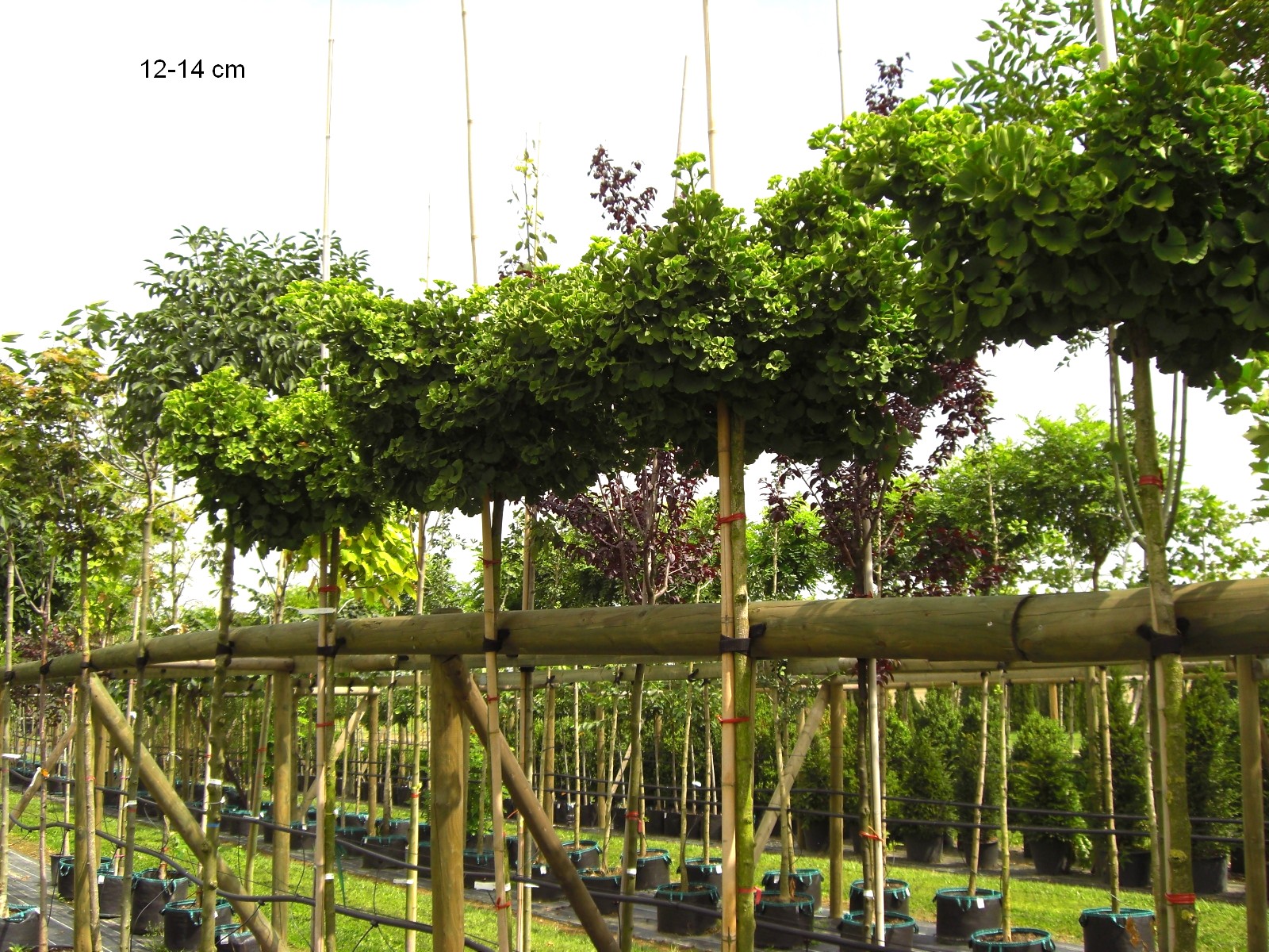 - Die Bäume wachsen im Freiland und werden mit Ballen aus dem Boden gestochen, danach, damit der schwere Erdballen an den Wurzeln verbleibt und zum Transport, mit einem Drahtkorb versehen.