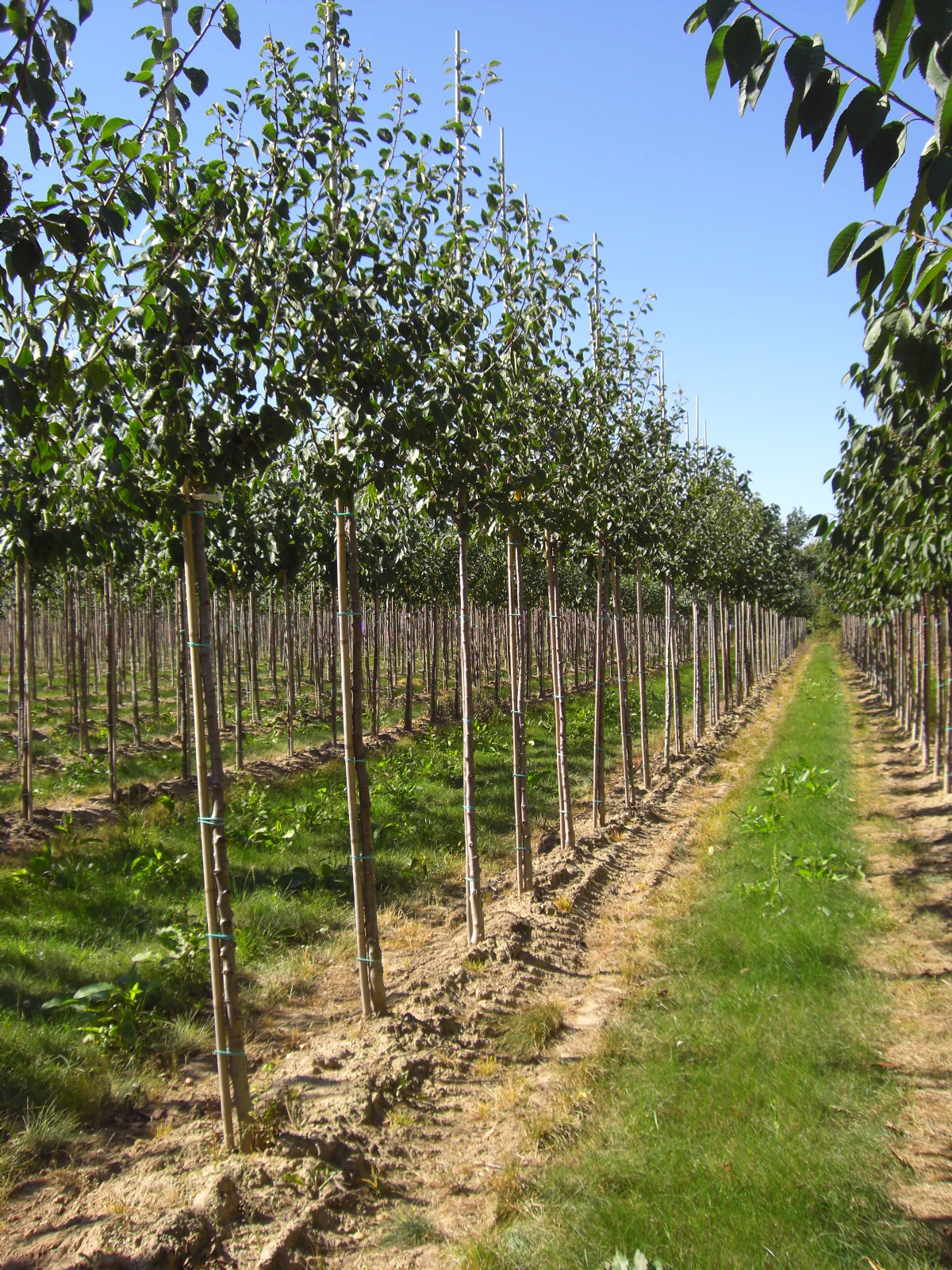 - Die Bäume wachsen im Freiland und werden mit Ballen aus dem Boden gestochen, danach, damit der schwere Erdballen an den Wurzeln verbleibt und zum Transport, mit einem Drahtkorb versehen.