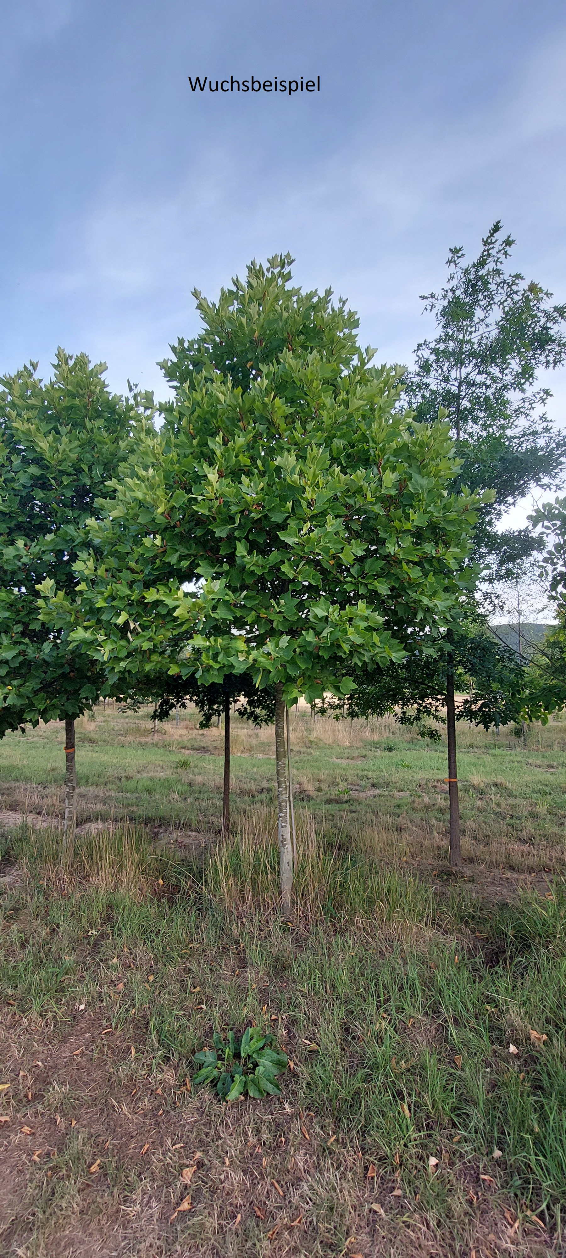 Wuchs: kugel- bis eirund und schnellwüchsig in der Jugend, im Alter bildet sich üblicherweise eine hohe eirunde Krone aus, Jahreszuwachs 20-40 cm; die Stammhöhe