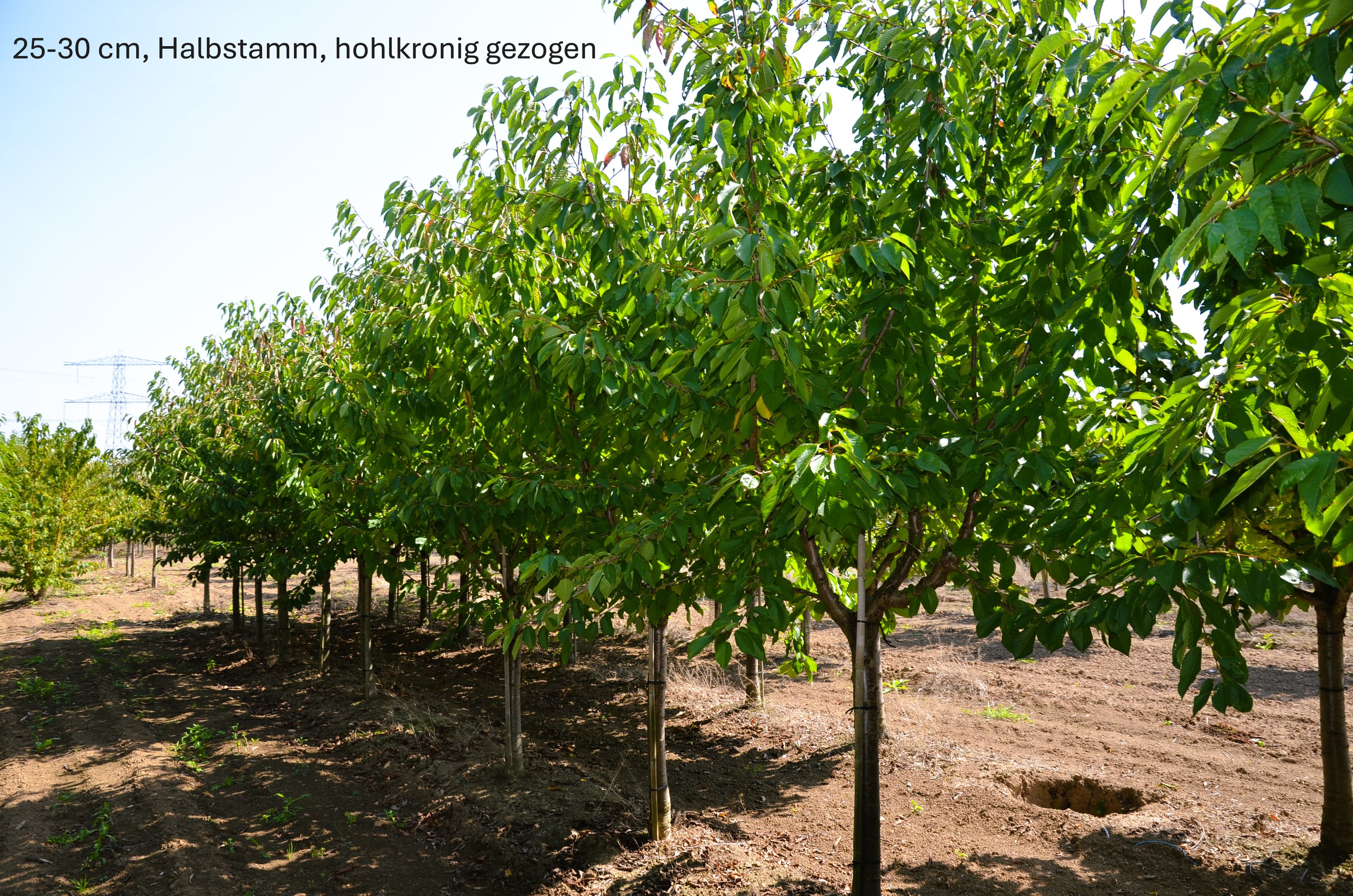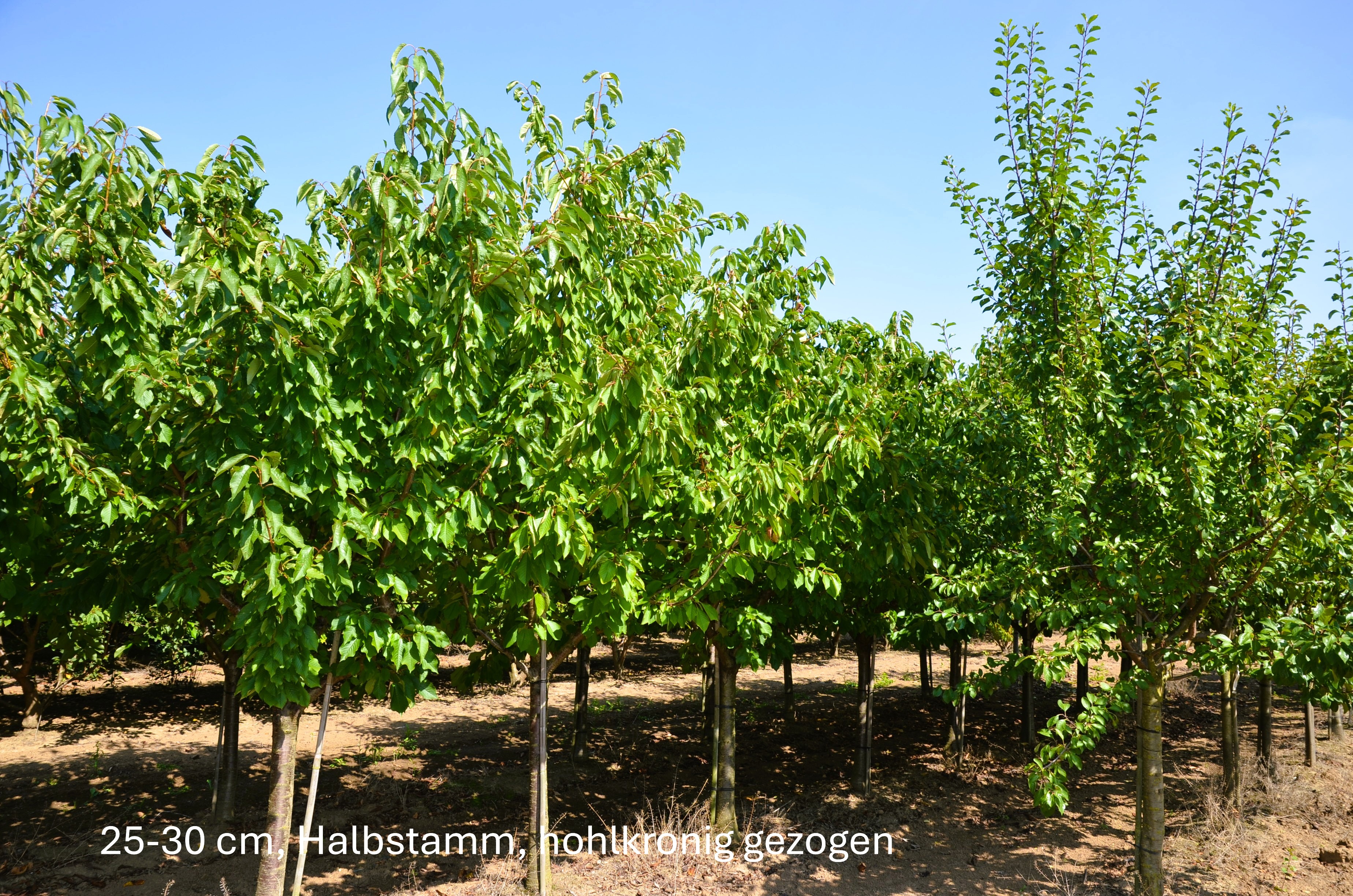 Die Wurzelunterlage ist Coltkirsche. Diese Sorte wächst nach 30 Lebensjahren über 7 Meter hoch.
