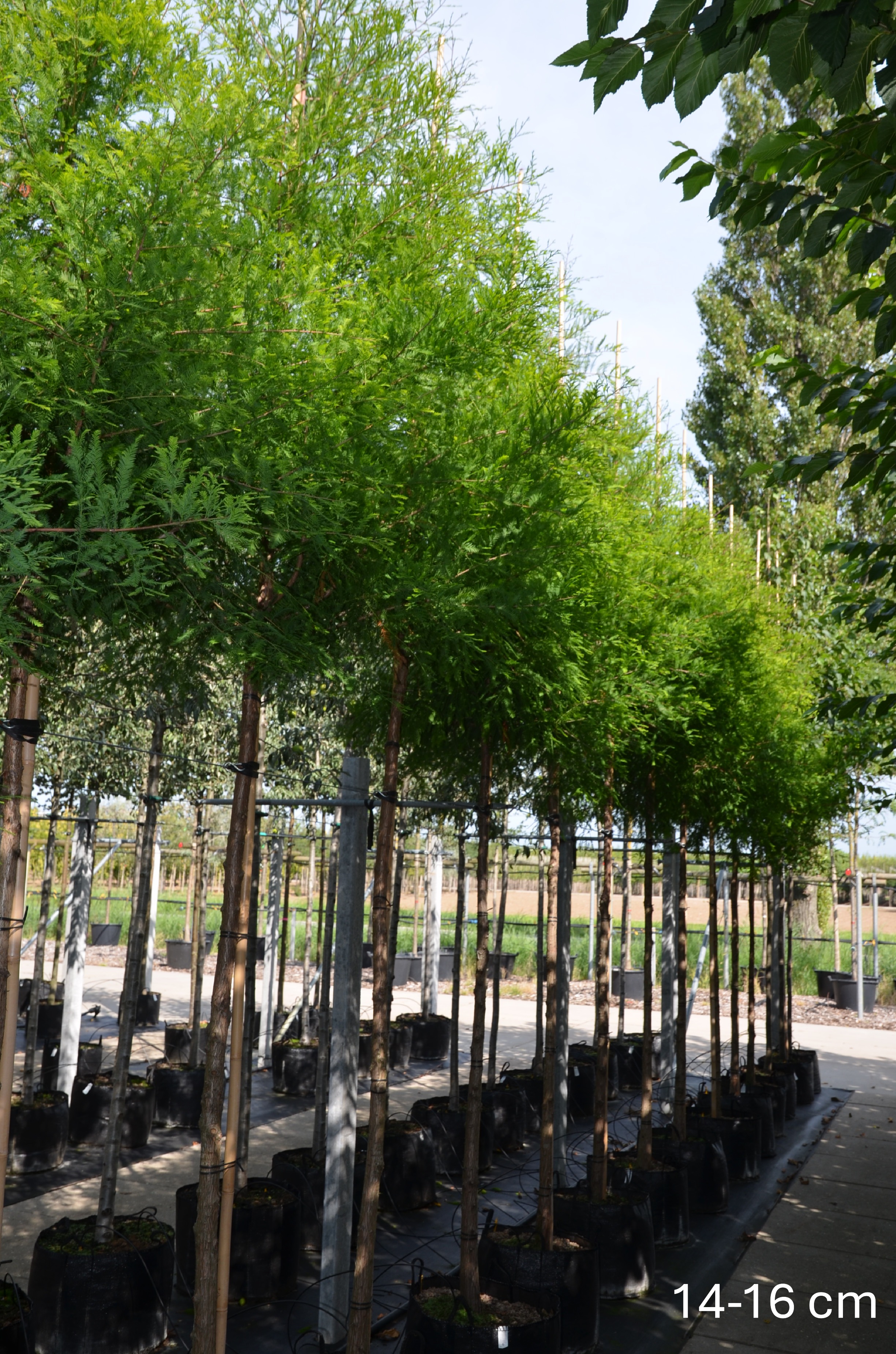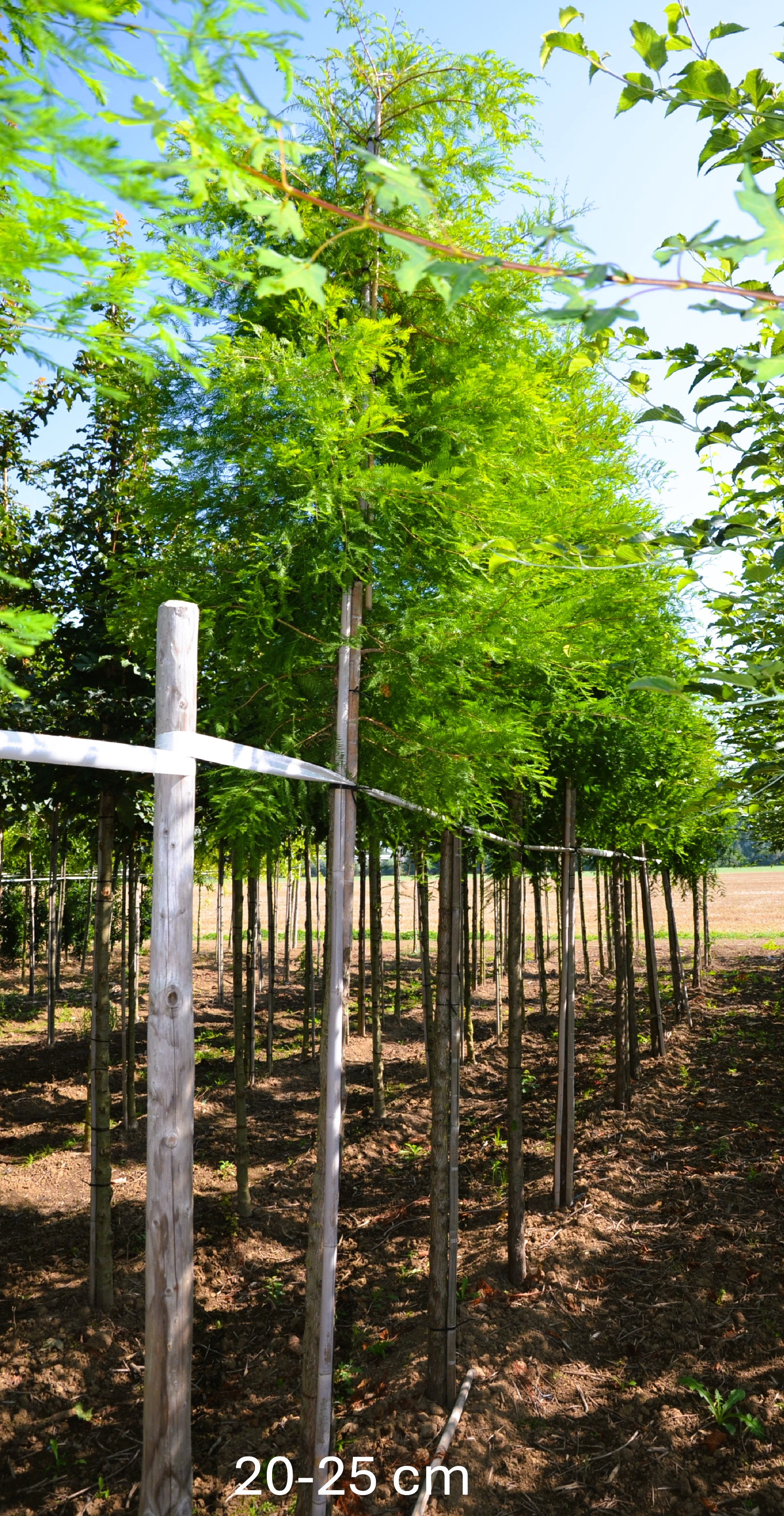 - Die Bäume wachsen im Freiland und werden mit Ballen aus dem Boden gestochen, danach, damit der schwere Erdballen an den Wurzeln verbleibt und zum Transport, mit einem Drahtkorb versehen.