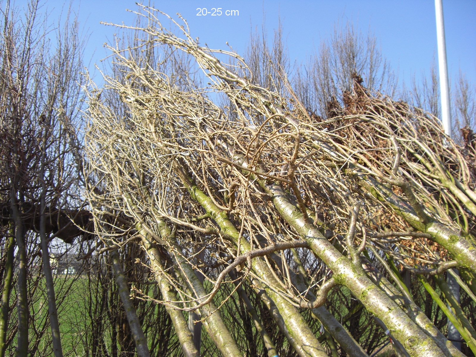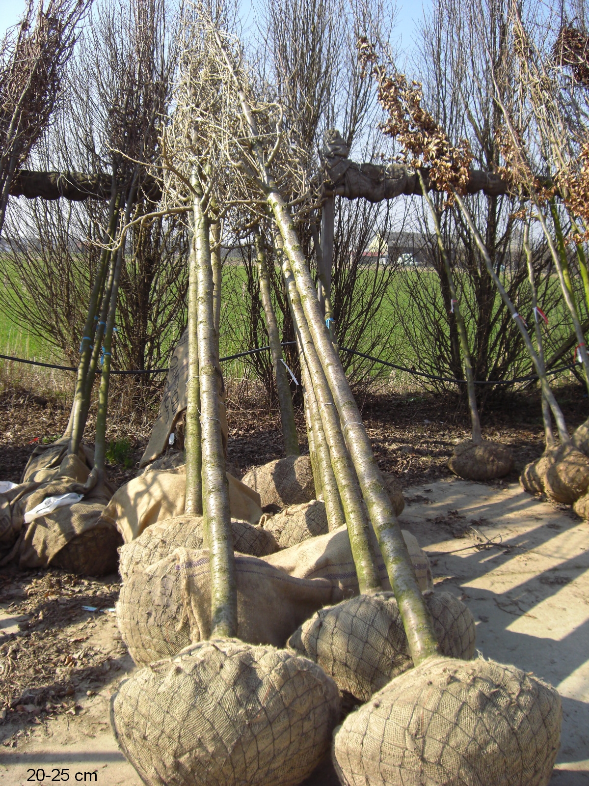 - Die Bäume wachsen im Freiland und werden mit Ballen aus dem Boden gestochen, danach, damit der schwere Erdballen an den Wurzeln verbleibt und zum Transport, mit einem Drahtkorb versehen.